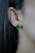 Shop the Esme Stud Earrings featuring a smooth green stone framed in a gold bezel — perfect for a subtle yet elegant statement.