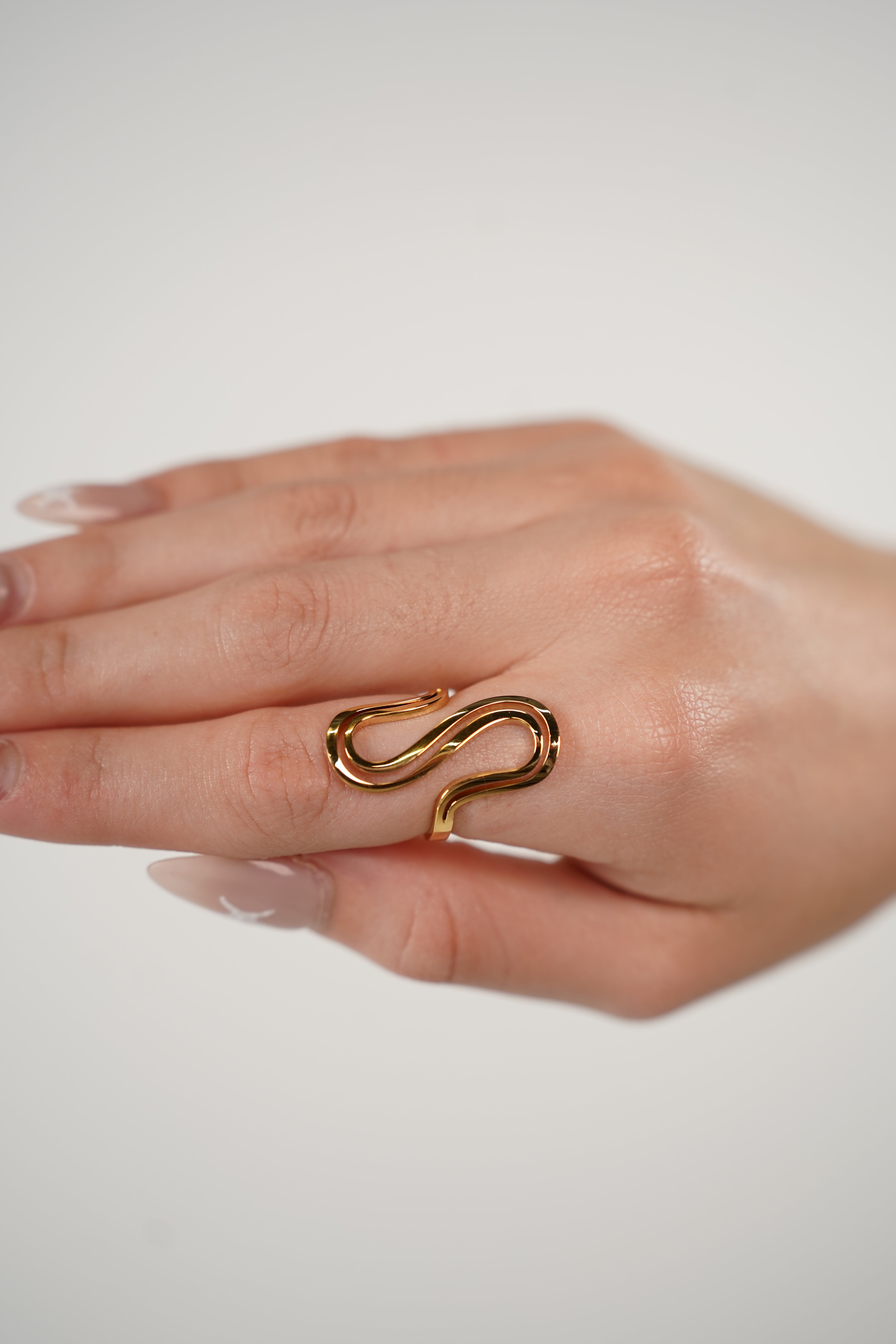 Meta Description: Meet the Keyla Loop Ring – a sculptural, gold-tone ring with a bold double-loop design. Make a statement with this fluid, open-ended accessory.