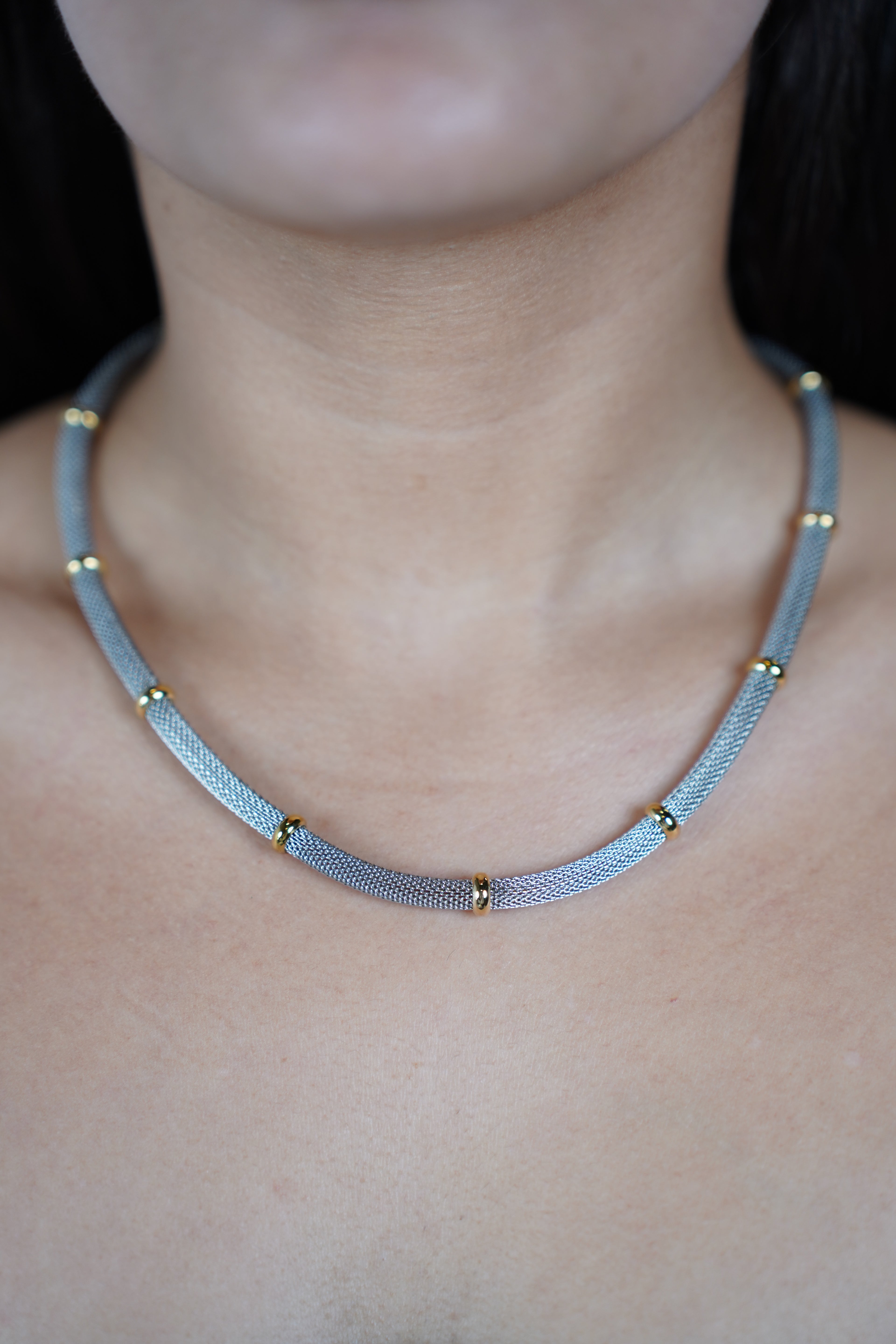 Novah Chocker | Two-Tone Silver Mesh Necklace
