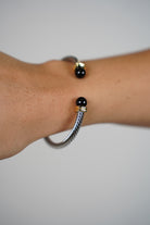 Vixael Bracelet – Cable Bangle with Black Bead Tips