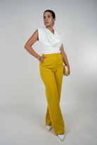Title: Alice Pants – Mustard Yellow High-Waisted Wide-Leg Trousers