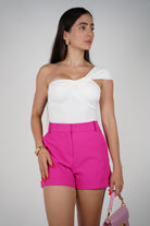 Meta Description: Turn heads in the Alicia Shorts – high-waisted, cuffed, and perfectly tailored in a bold pink hue. A statement piece for your summer wardrobe.