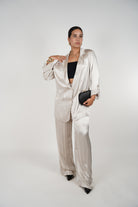 Slip into elegance with the Analieah Set. This satin blazer and pant set brings softness, style, and versatility for your polished moments.