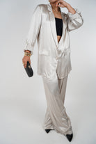 Analieah Satin Set – Luxe Pearl Oversized Blazer & Pants Combo