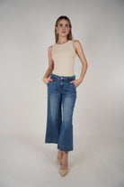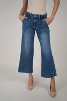 The Claudia Jeans bring a fun, polished feel to your denim collection. Designed with a high-rise waist and cropped wide-leg cut, these jeans strike the perfect balance between comfort and edge. Front seam stitching and large pockets add subtle structure, while the medium blue wash makes them endlessly versatile. Pair them with bodysuits, blouses, or knits for a clean, put-together everyday look.