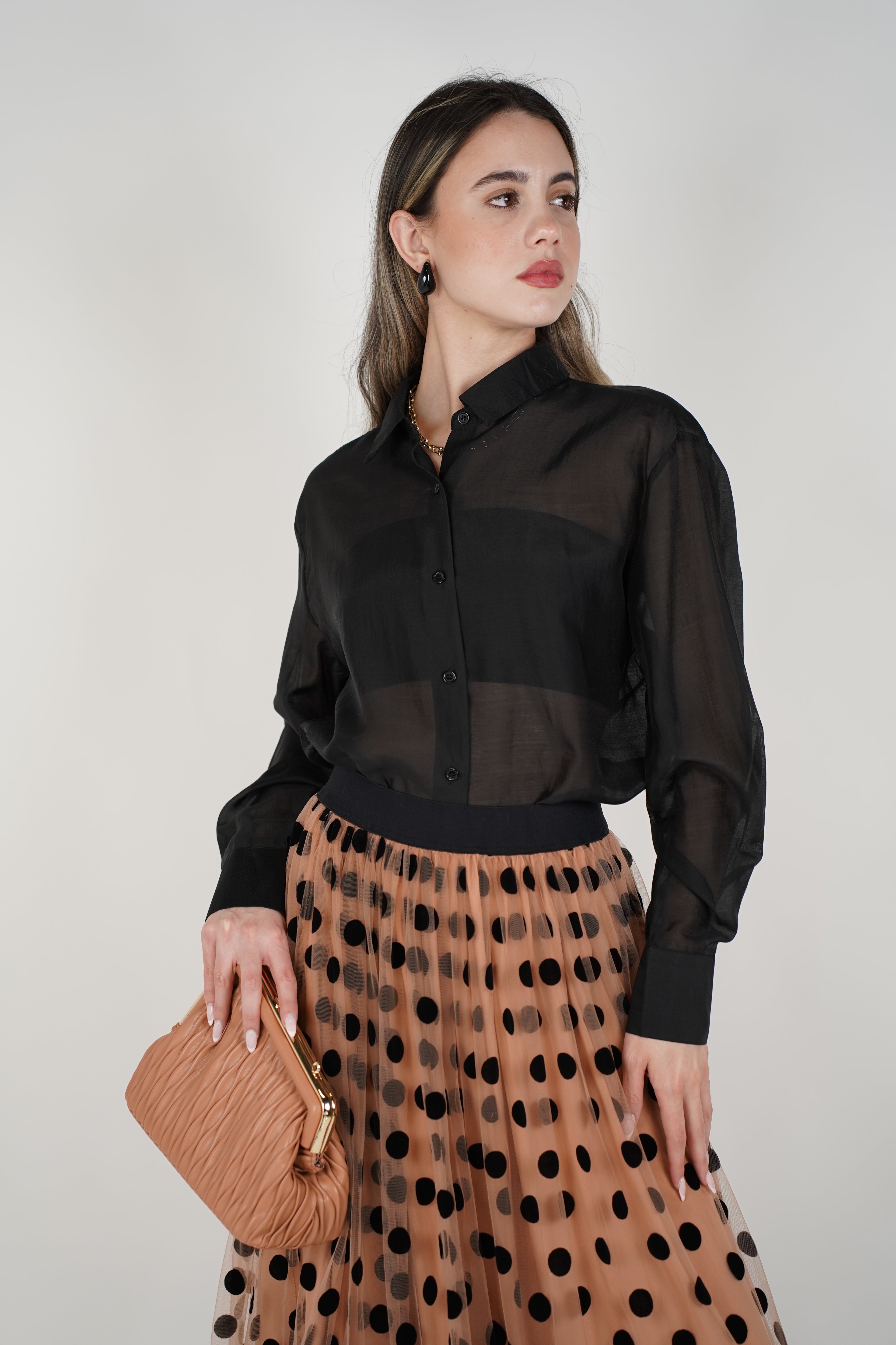 Meta Description: Shop the Davi Oversized Button Down in mocha. Lightweight, sheer, and effortlessly elevated—this blouse is a layering essential for any occasion.