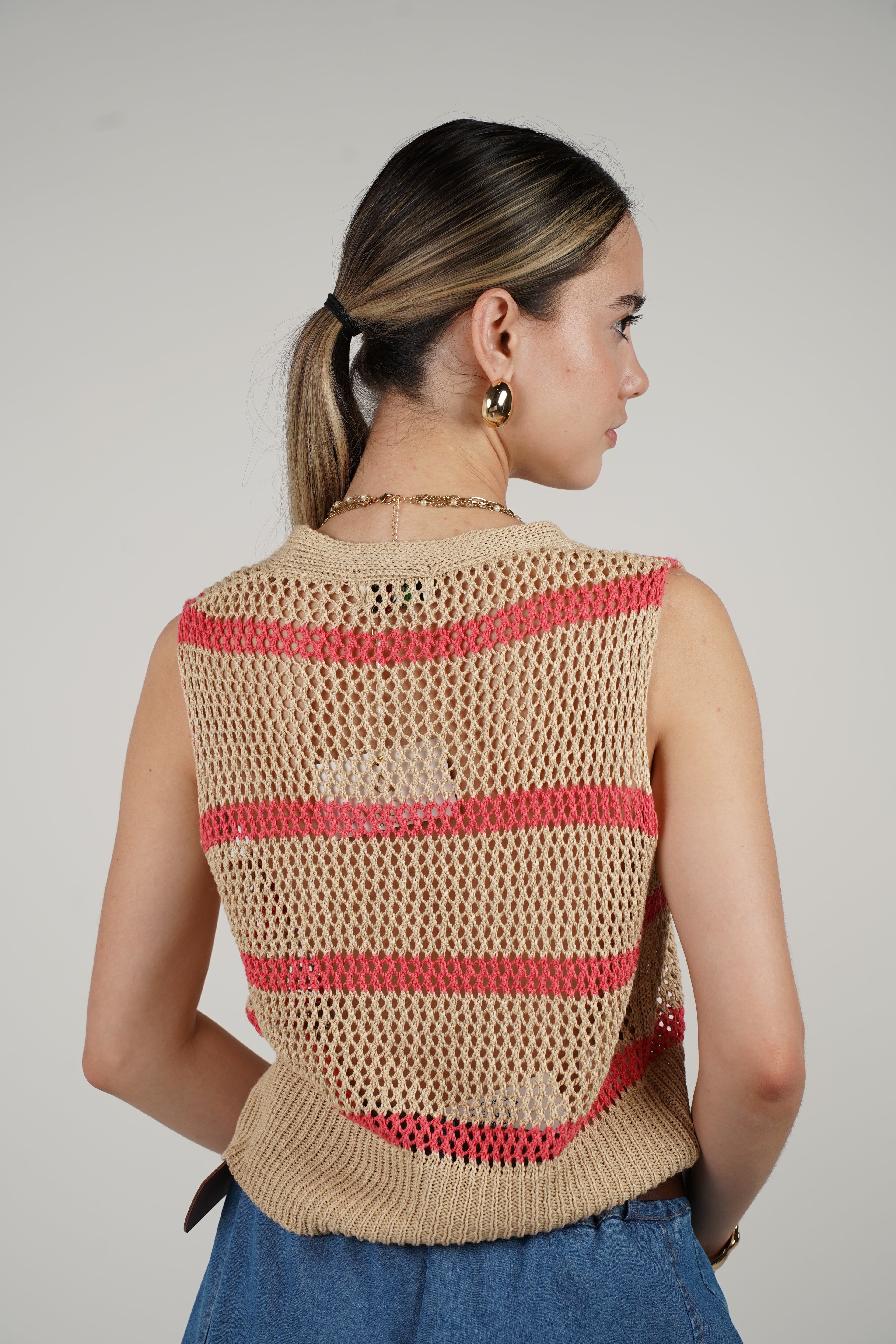 Demi Striped Crochet Vest – Lightweight Knit Layer One Size