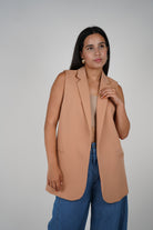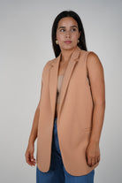 Ivory Vest – Sleeveless Beige Blazer for Layering | Carema Boutique