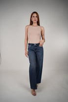 Model is wearing the Kamila Jeans styled with a fitted nude top and minimal accessories for a clean, everyday look.