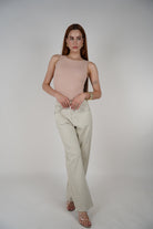 Grey High-Waist Utility Jeans – Structured Straight-Leg Neutral Denim