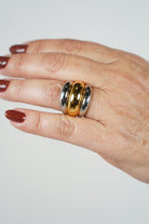 A bold chunky ring featuring a sculptural mixed-metal design that adds a modern statement to any look.