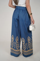 Meta Title: Olguita Embroidered Pants – Tribal Blue Wide-Leg Trousers | Carema Boutique