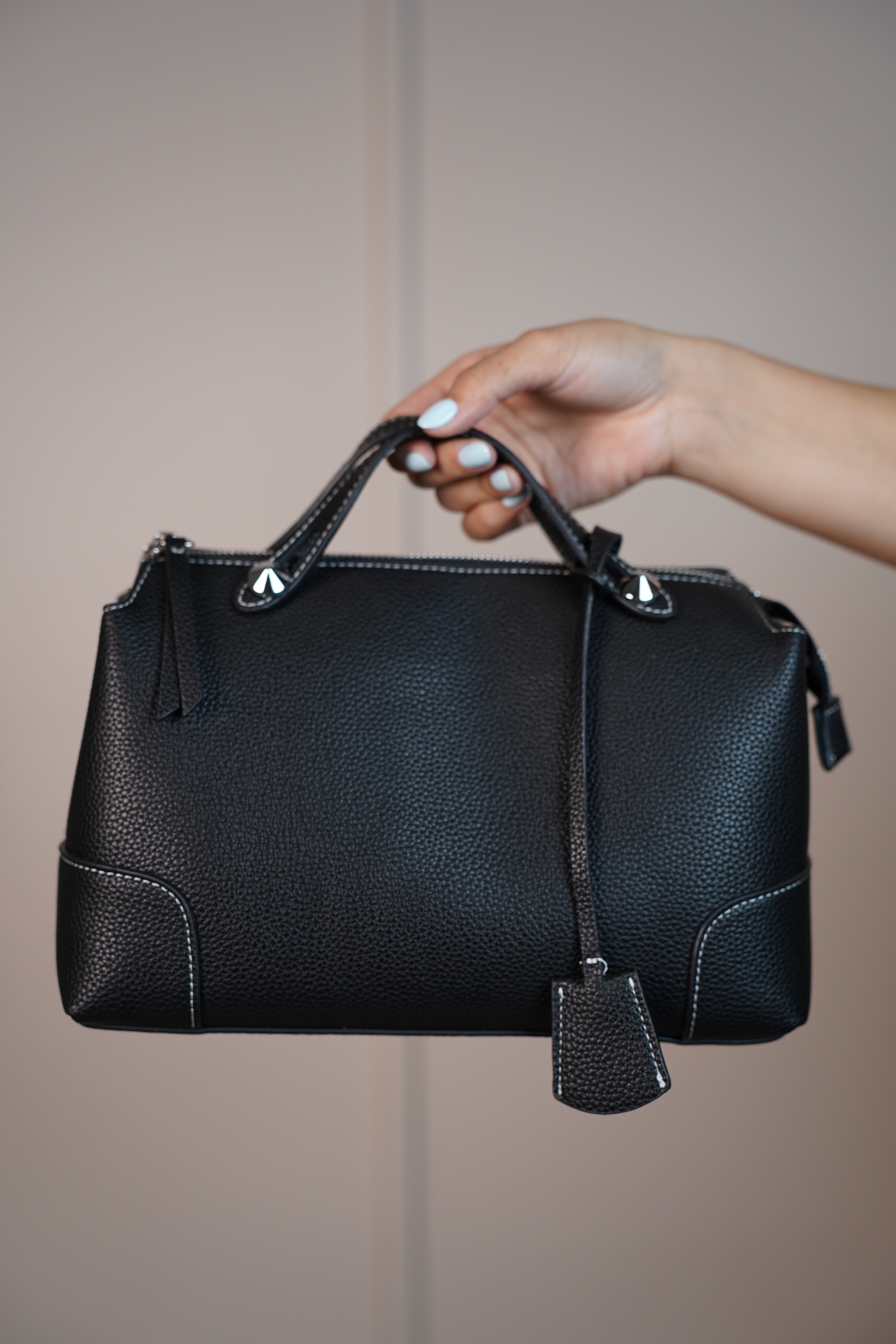 Top-handle purse available in pink, black, brown, off-white, and light blue