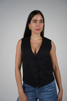 Valentina Black Tailored Vest – Classic Button-Up Waistcoat for Effortless Style