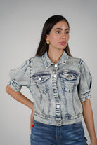 Meta Title: Yadira Jean Jacket – Puff Sleeve Acid Wash Denim | Carema Boutique