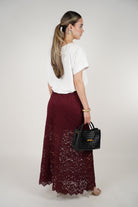 Yeva Burgundy Lace Maxi Skirt – Elegant Sheer Style | Carema Boutique