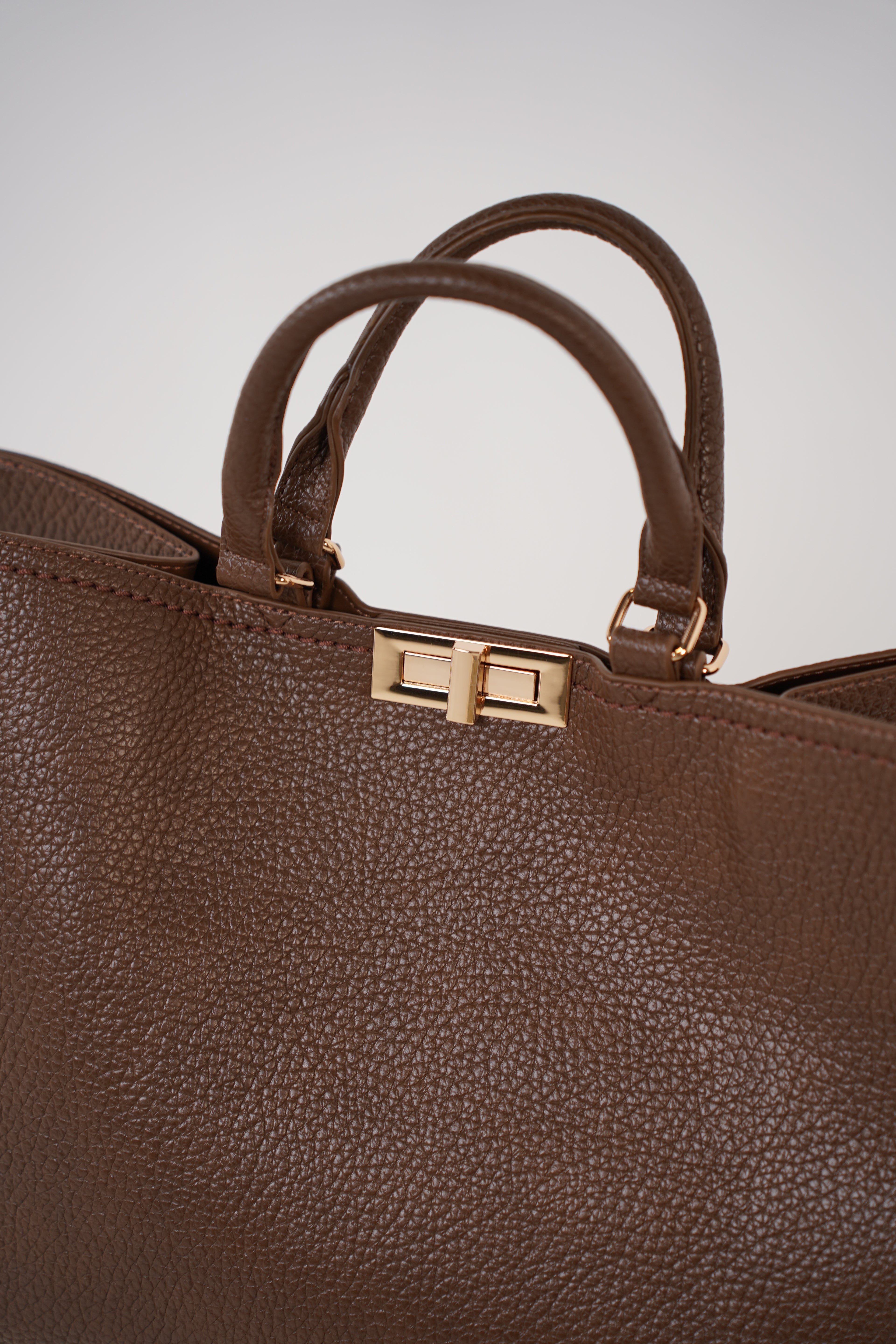 Structured silhouette with elegant gold turn-lock closure