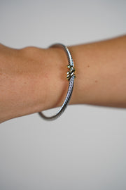 Runi Cross Bracelet – Sleek Cable Bangle with Golden Knot Accent - Two tone