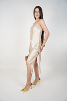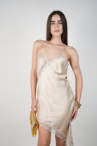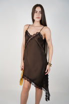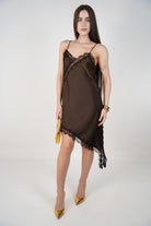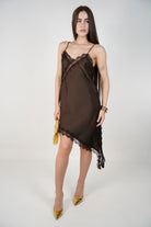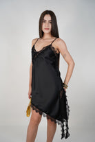 Janelle Satin Mini Dress – Asymmetrical Lace Slip Silhouette