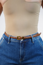 Averin Square Buckle Belt – Brown Thin Belt with Gold Buckle | Carema Boutique