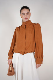 Kessia Balloon Hem Jacket – Caramel High-Neck Soft Jacket | Carema Boutique