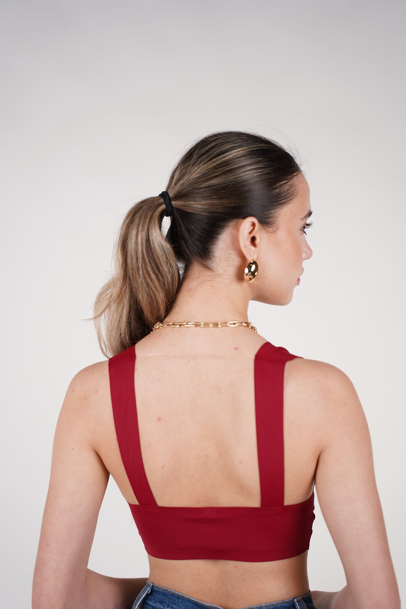 Shop the Ruvia Seamless Droptop, a deep-V seamless crop top offered in bold red and classic black. Smooth, sculpting, and perfect for elevated everyday looks.