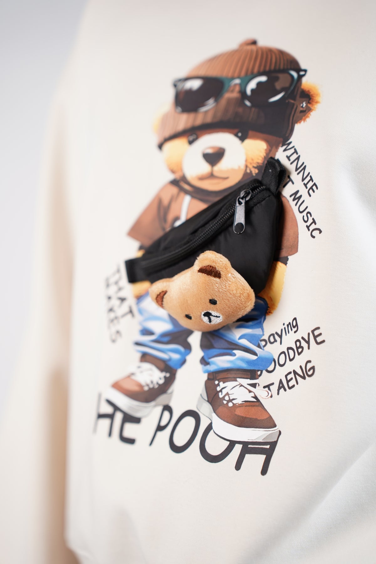 A soft, comfy sweater featuring a fun double-bear graphic with a mini pouch detail. Cute, casual, and perfect for everyday wear.