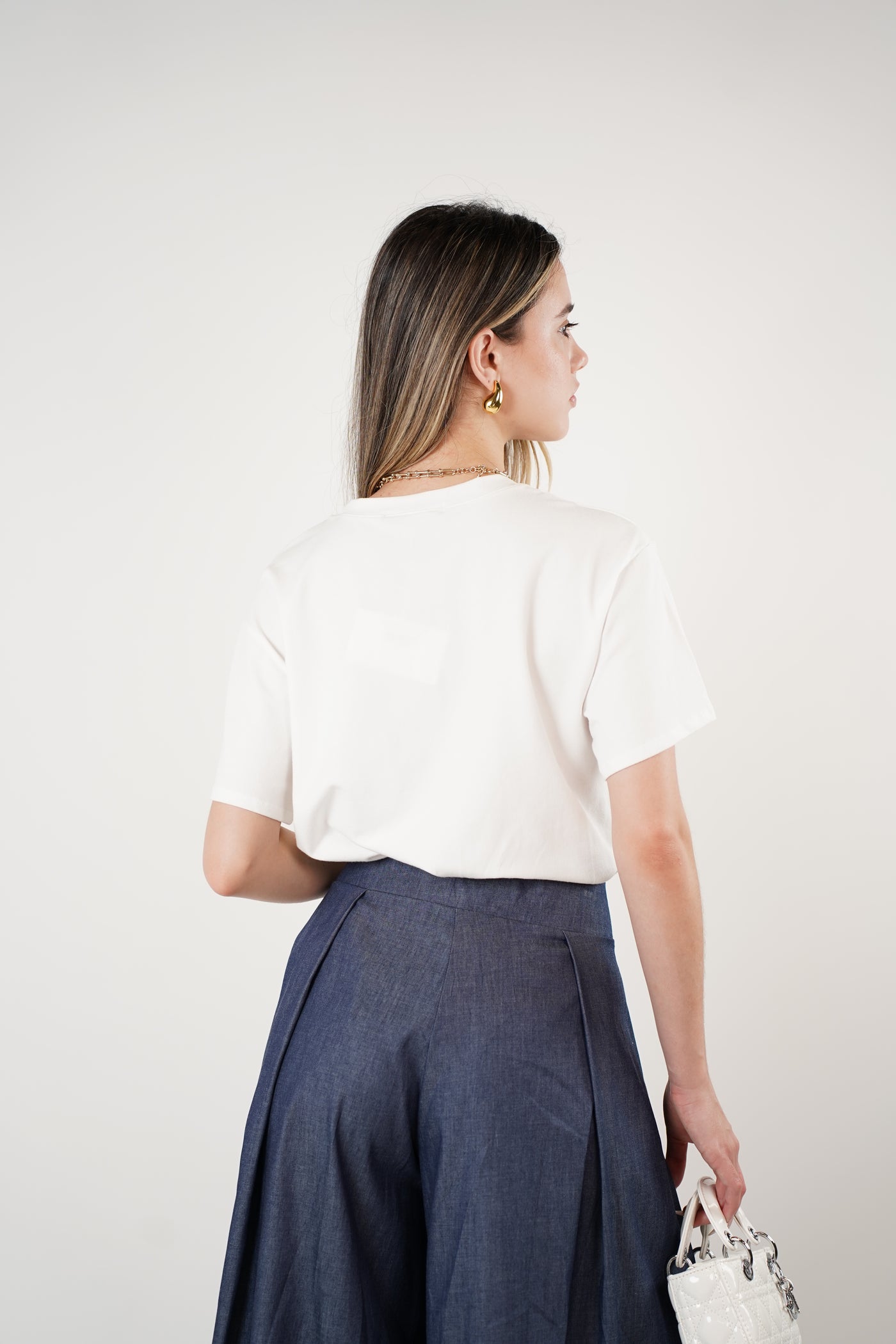 Pairs well with high-waisted bottoms for a casual-chic vibe