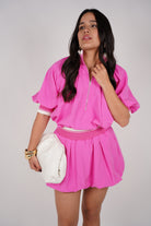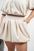 Elastic waistband mini skirt with a flowy, bubble-style silhouette
