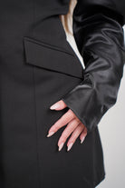 Tailored blazer silhouette with a deep V neckline
