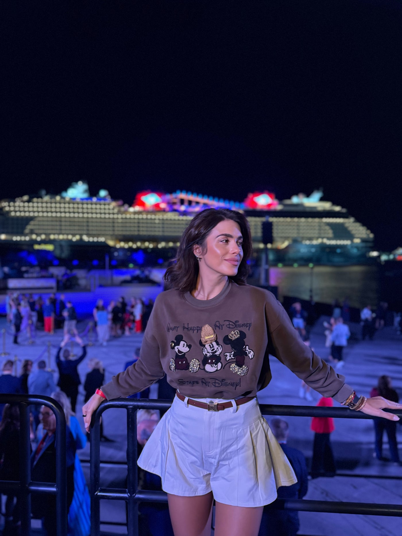 Alaskan Mickey Sweater – beige sweatshirt with embroidered Mickey design and sequin details
