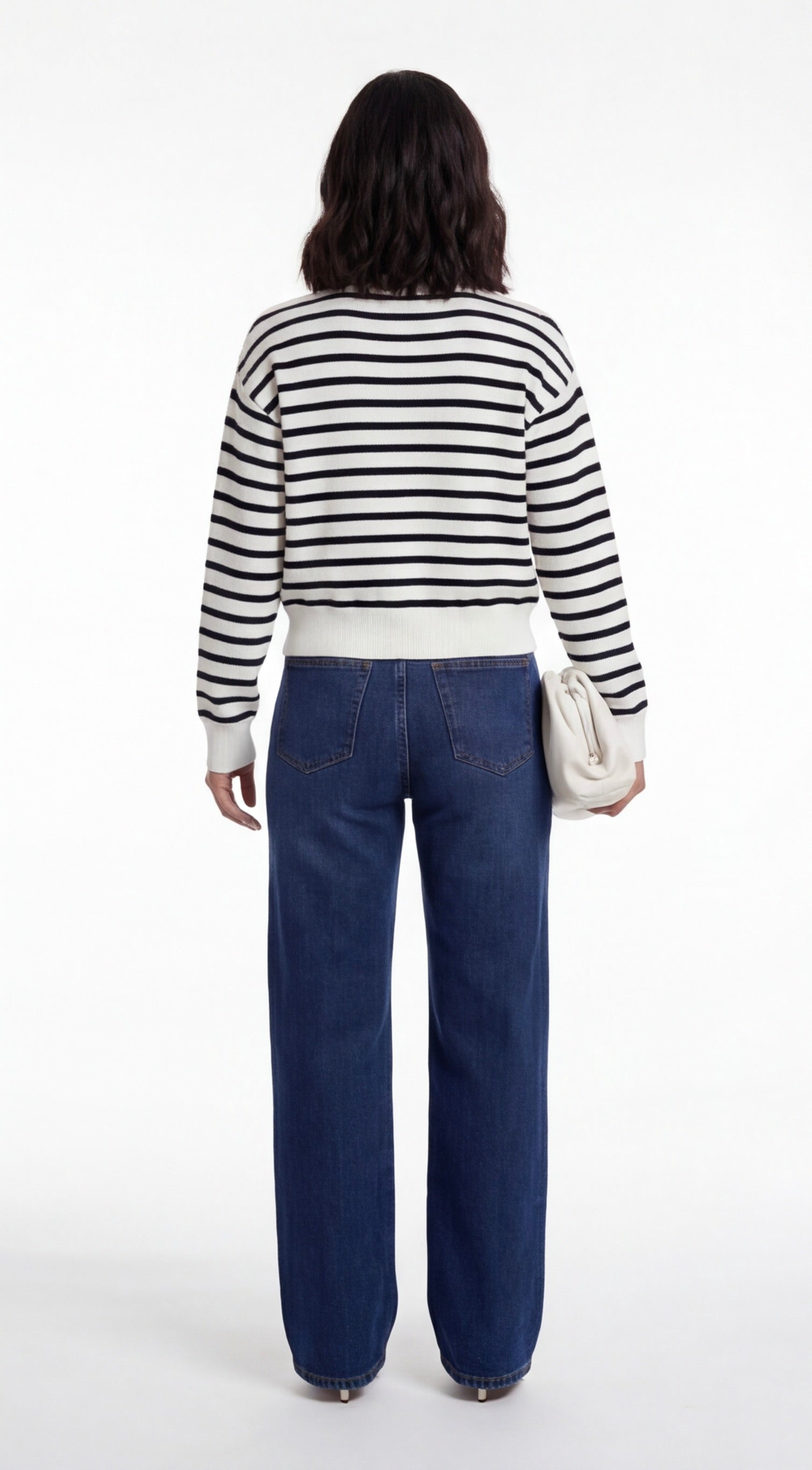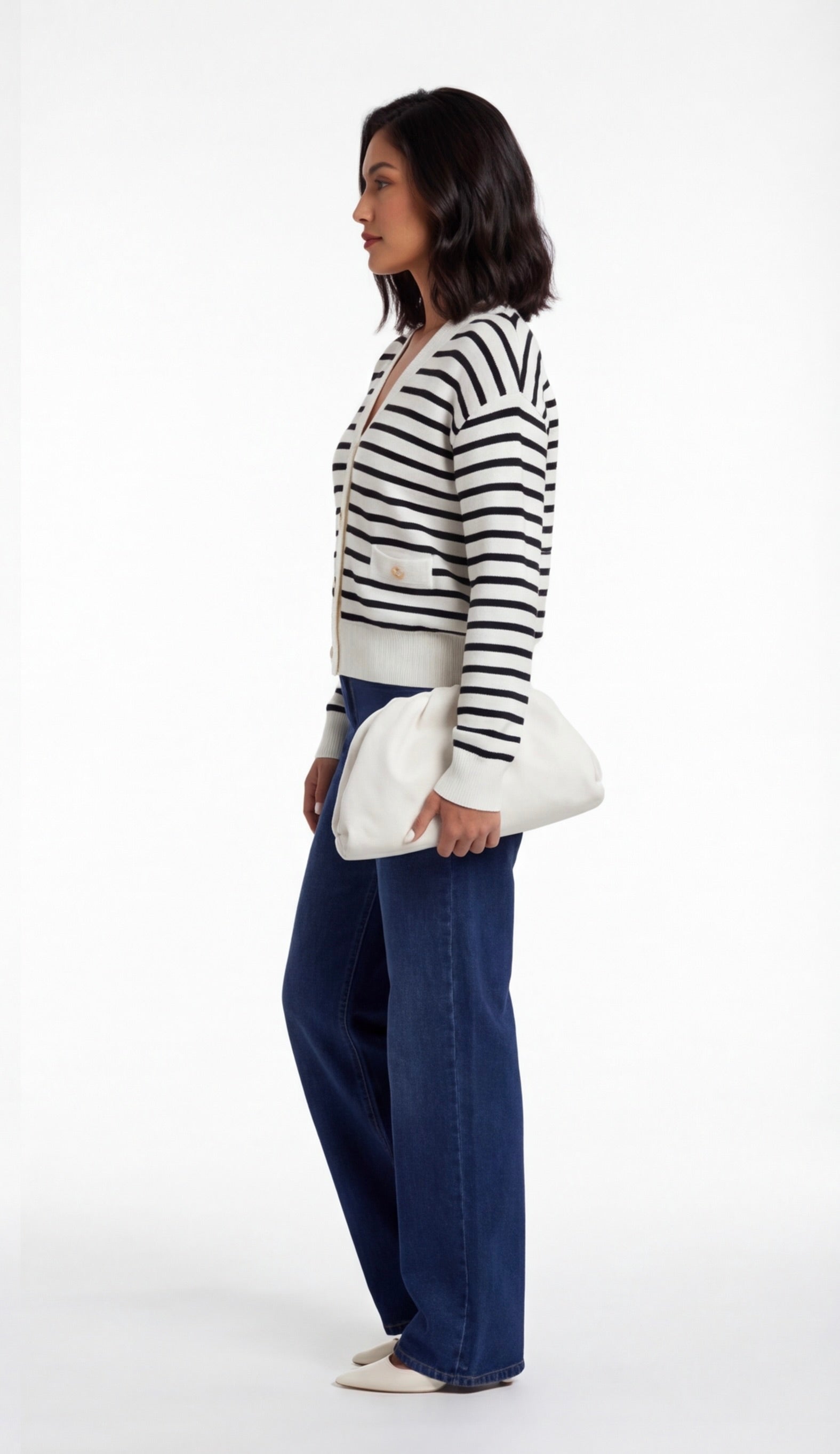 The Luna Striped Sweater Cardigan is a refined take on a timeless classic, designed with intention and quiet sophistication.