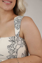 Details: Square neckline, wide shoulder straps, floral jacquard pattern, front flap pocket details.