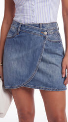Llyra Wrap Mini Denim Skirt | Asymmetrical High Waist