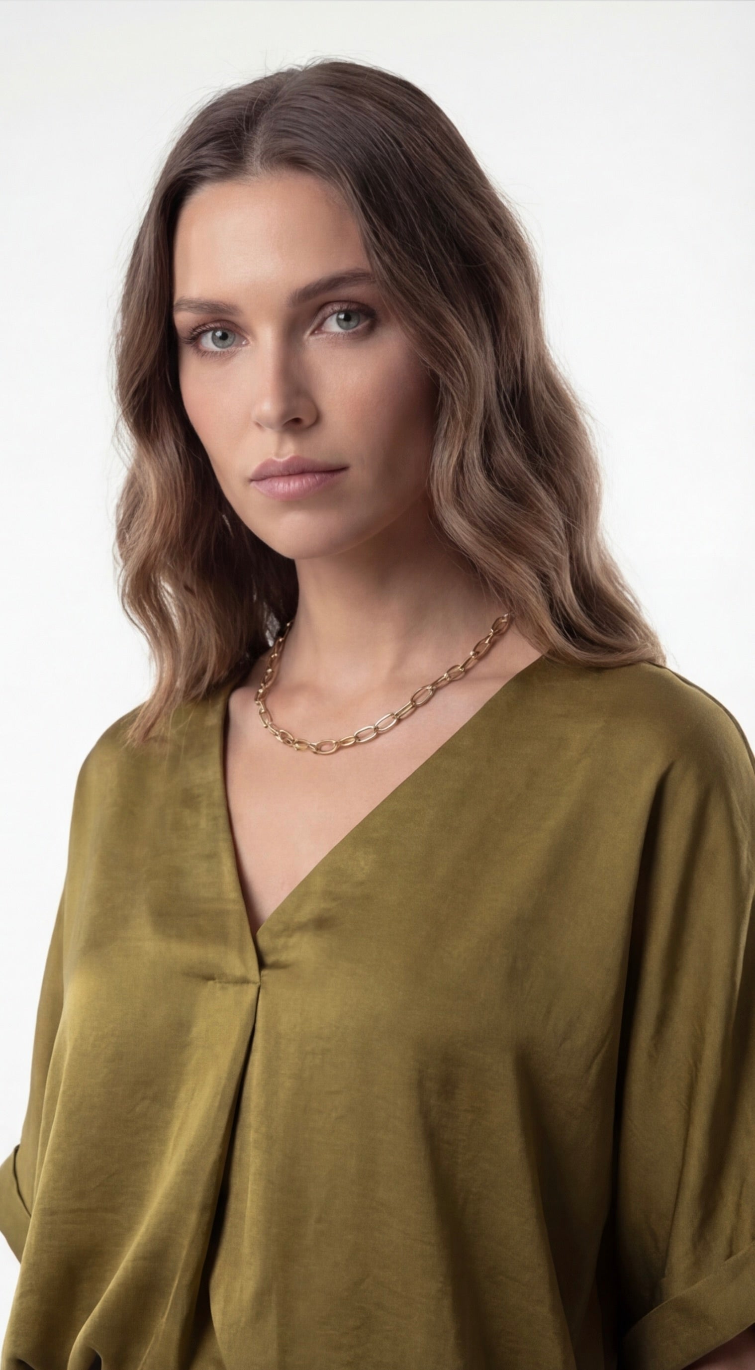 The Leni V-Neck Blouse embodies effortless elegance with a fluid silhouette and a refined satin finish. Designed to drape beautifully over the body, this Timeless piece delivers understated luxury with a relaxed yet elevated presence.