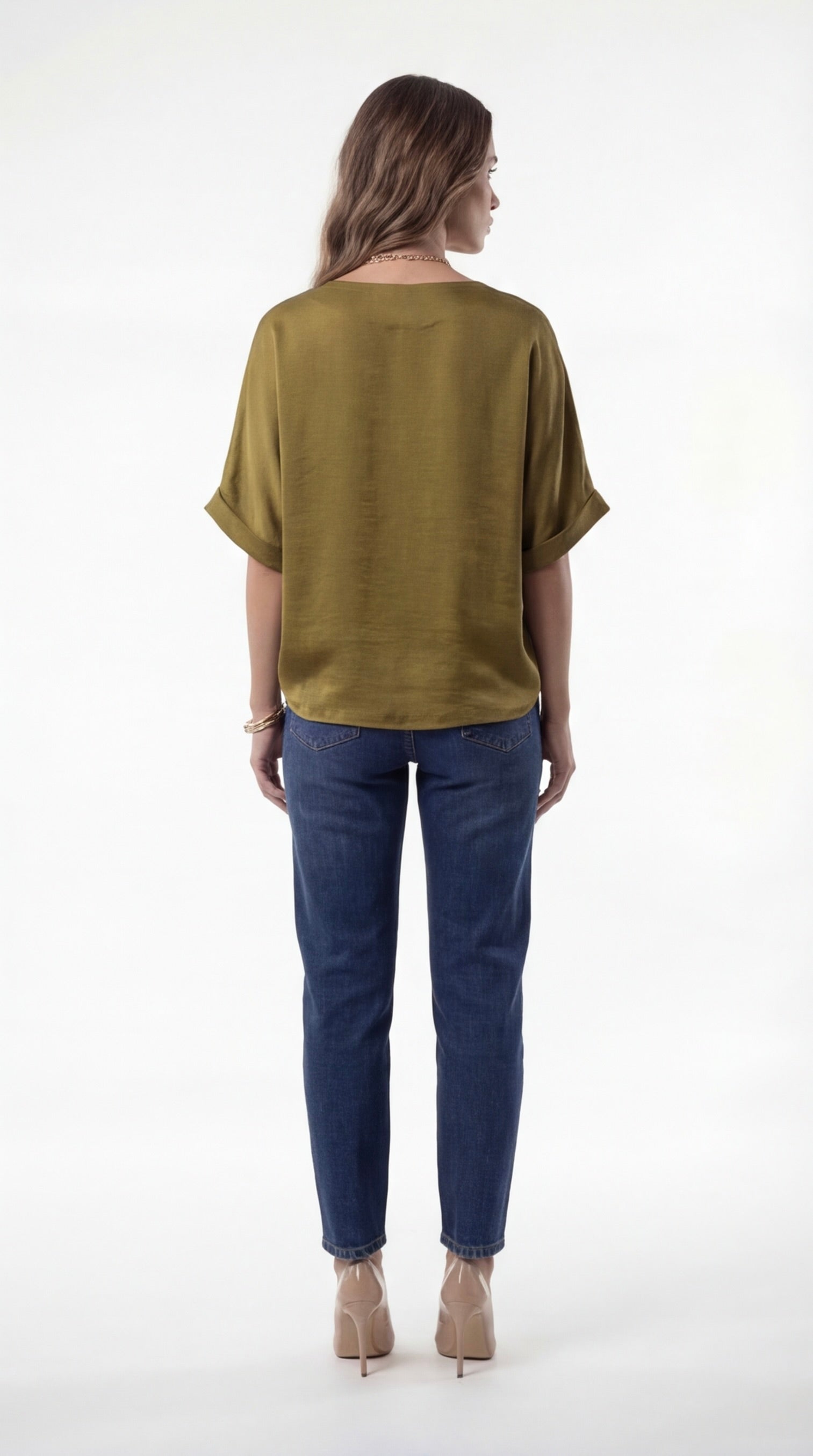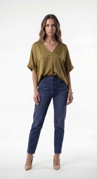 Leni Satin V-Neck Blouse | Relaxed Luxury Top | Carema
