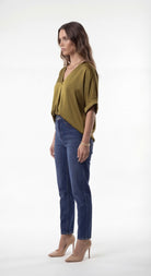 The Leni V-Neck Blouse features a fluid satin finish, relaxed fit, and elegant drape for a timeless, elevated everyday look.