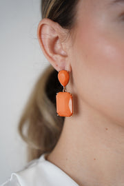 Make a statement with the vibrant Xavina Earrings featuring bright orange geometric stones and gold detailing.