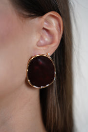 Make a statement with minimal effort. The Solea Circular Earrings feature a bold marbled disc in a deep wine tone, framed with a polished gold edge for a sleek, sculptural finish. Lightweight despite their size, they add instant drama to any look — from casual hair-up days to evening glam.