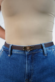 Lavina Belt – Slim Brown Belt with Gold Lock Buckle | Carema Boutique