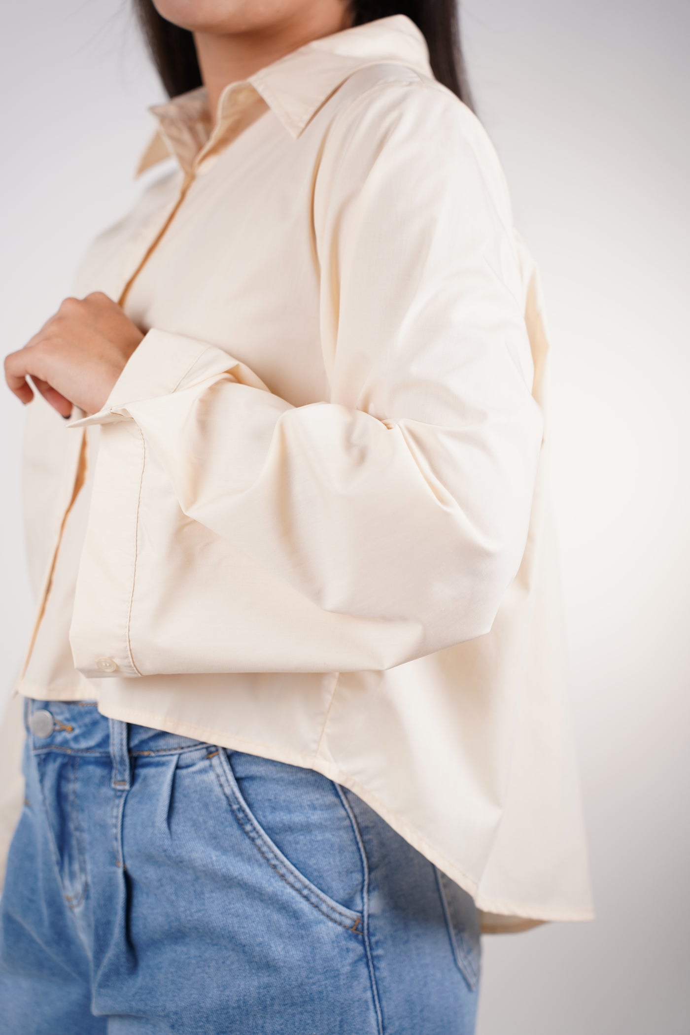 A structured cropped poplin shirt featuring long sleeves, a classic collar, and a clean tailored finish—perfect for polished everyday looks.