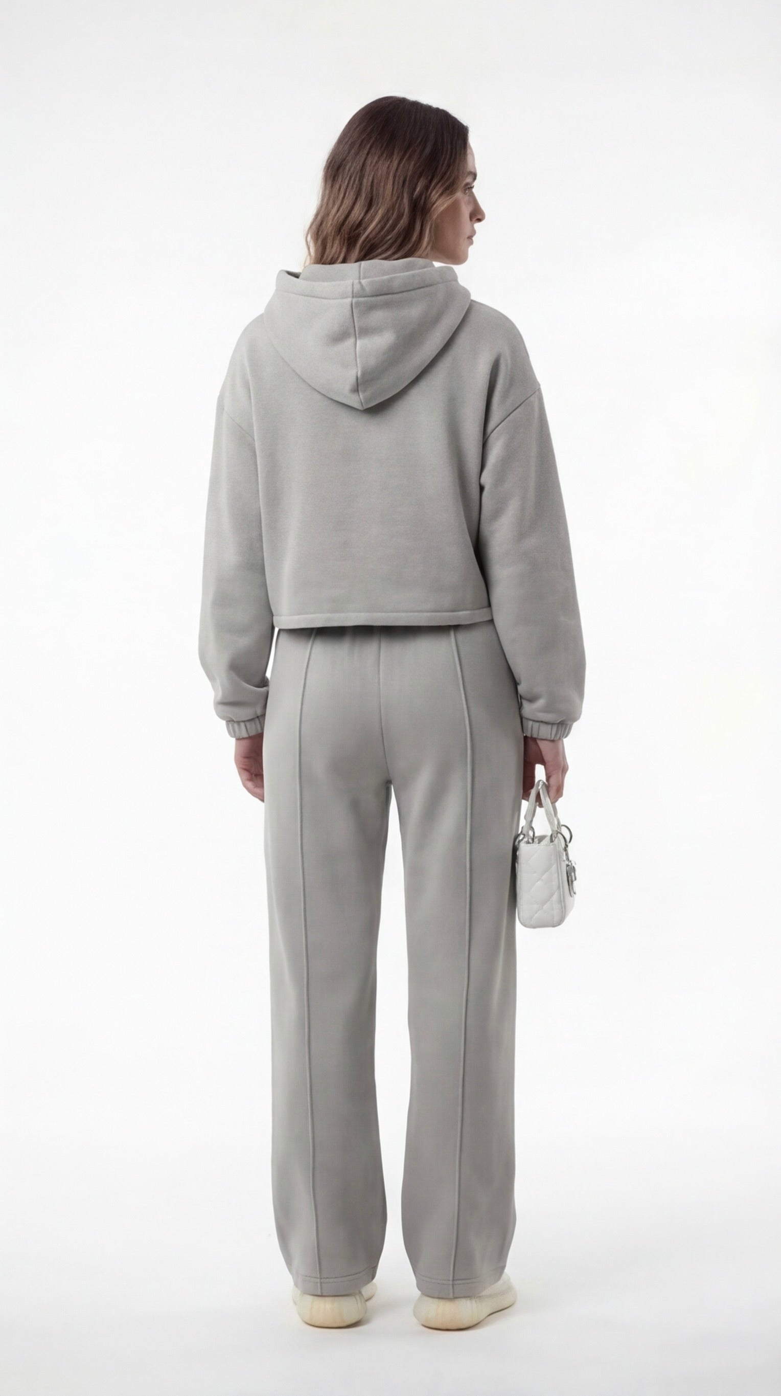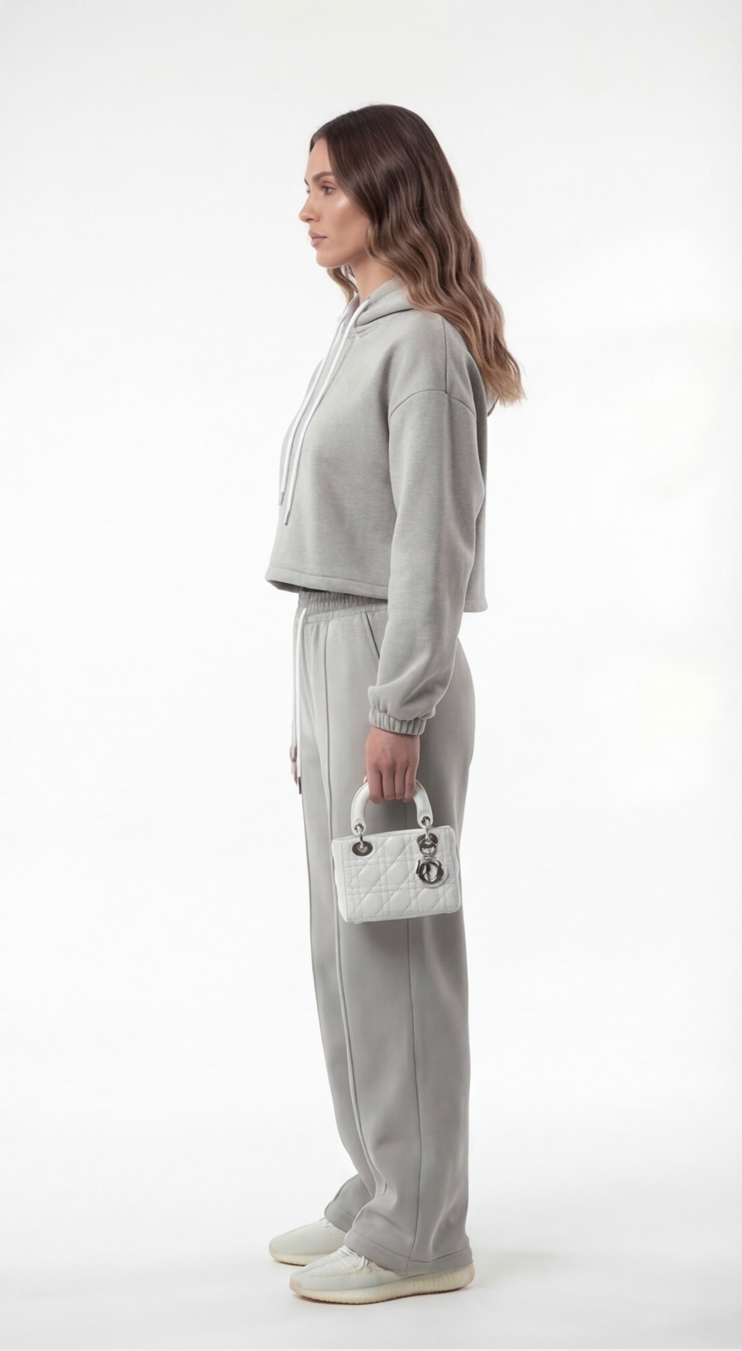 El conjunto de pantalón Zyva es el esencial de descanso elevado que tu armario necesita. Diseñado con una moderna sudadera con capucha corta y pantalones relajados de pierna ancha, este conjunto ofrece comodidad sin comprometer el estilo. Líneas limpias, estructura suave y minimalismo tonal lo hacen elegantemente chic.