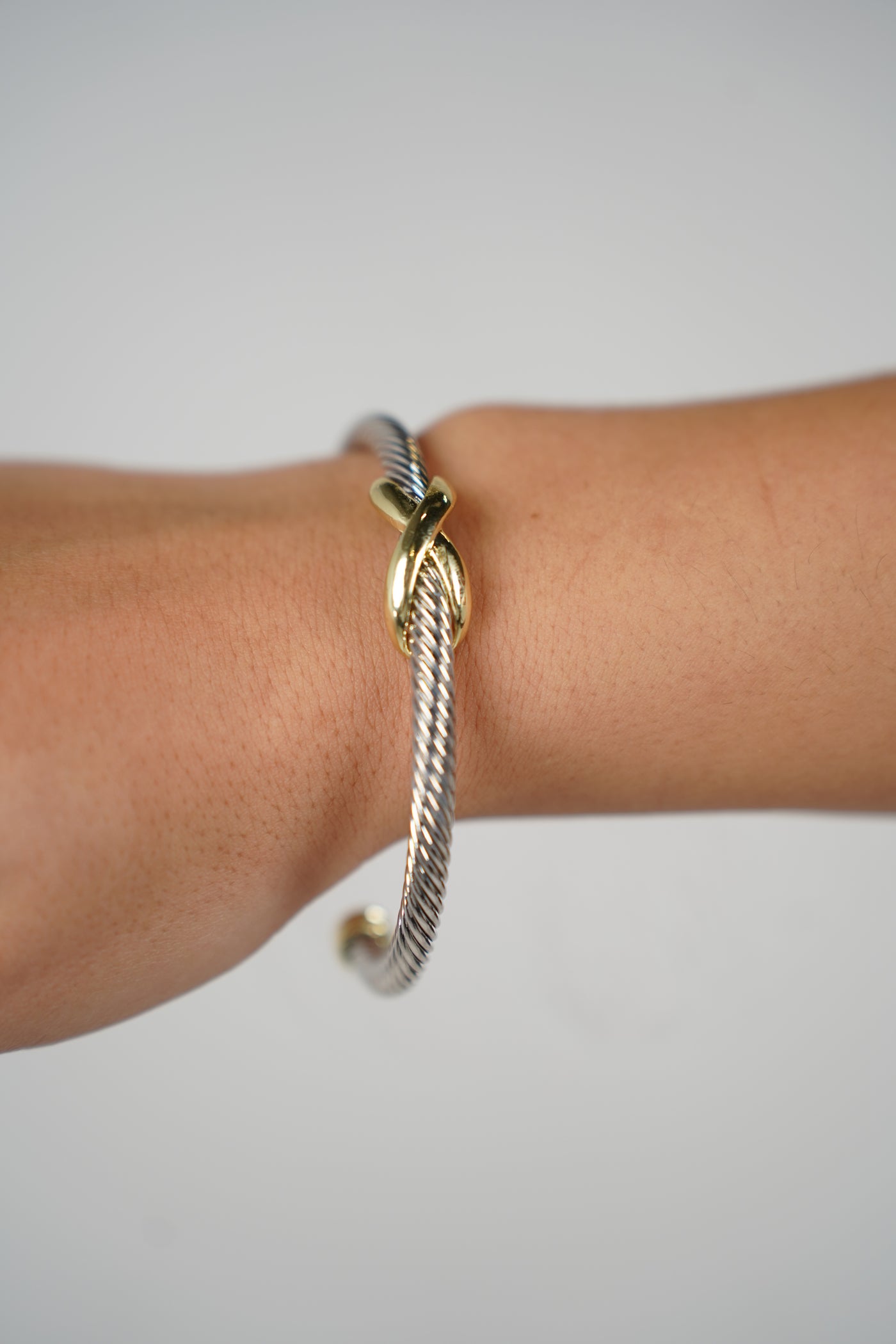 Amaria Knot Bracelet | Two-Tone Cuff Bracelet with Gold Knot