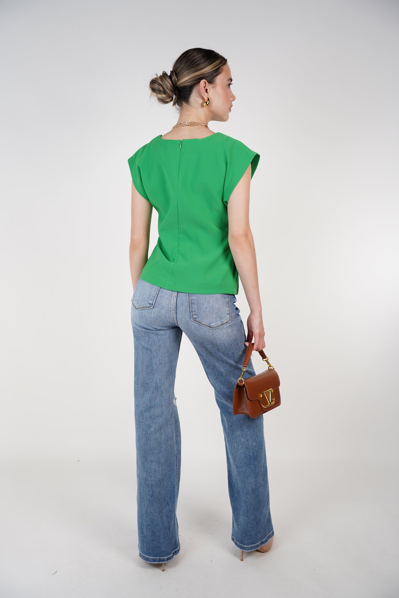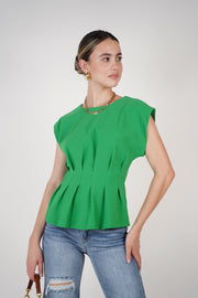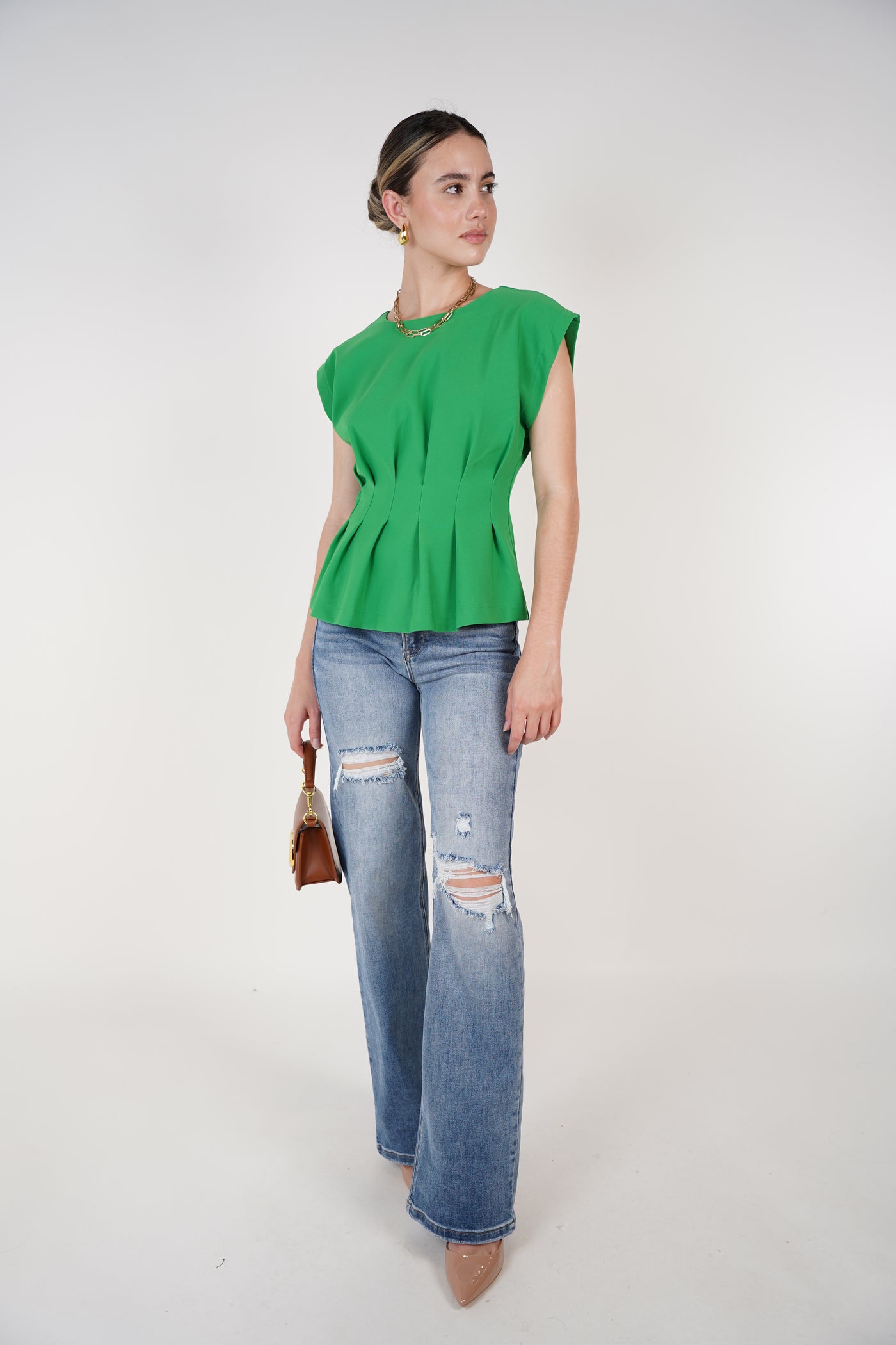 Inform when this item available Carlota Top – Pleated Waist Green Blouse
