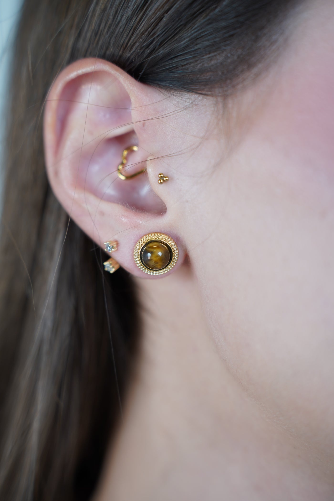 Add a refined touch of color to any look with the Esme Stud Earrings. Featuring a glossy green stone framed in a textured gold bezel, these studs strike the perfect balance between timeless and unique. Lightweight and easy to wear, they’re ideal for both everyday polish and special occasions.
