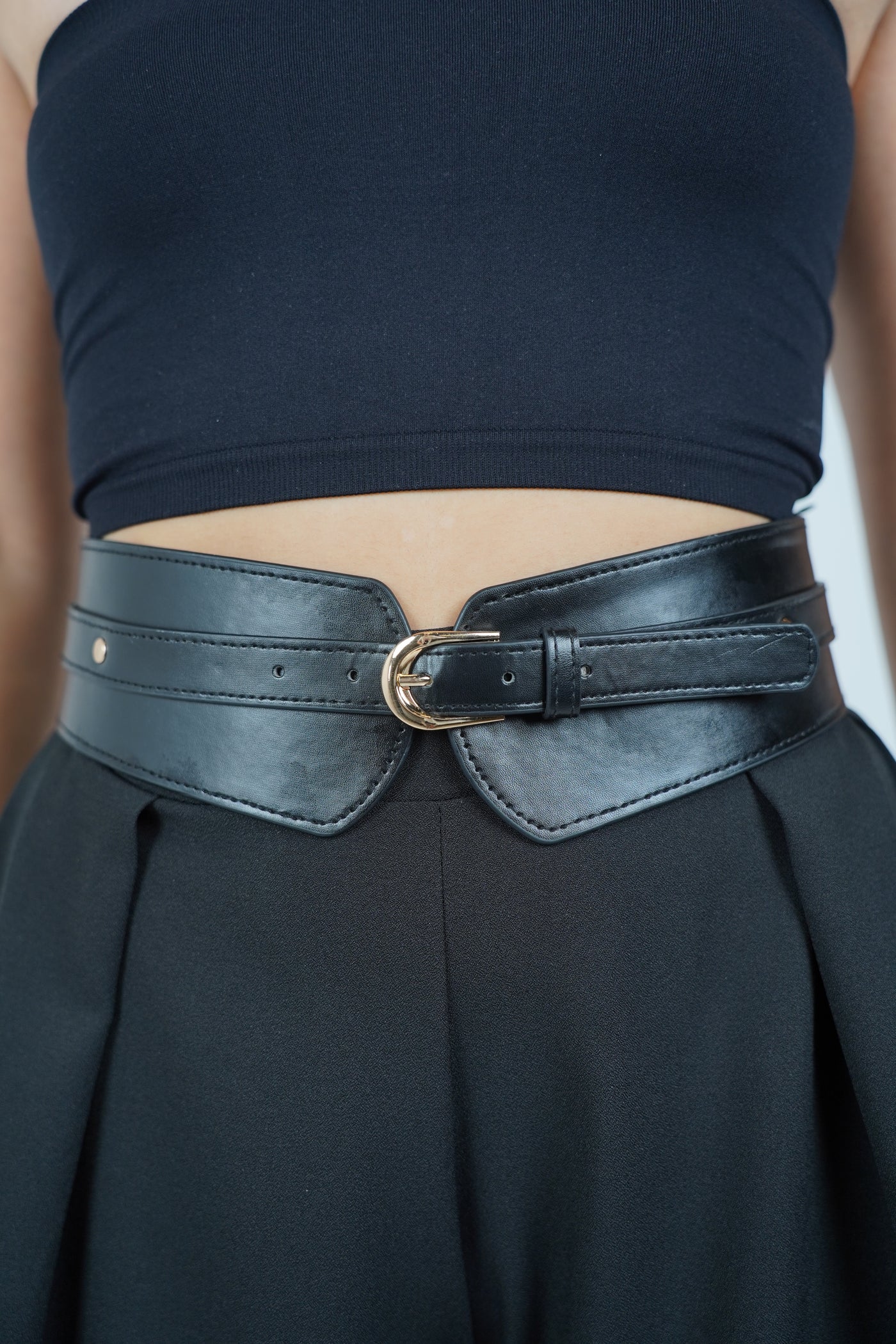 Keisa Elastic Thick Belt – Waist-Sculpting Faux Leather Belt (Also Available in Other Color)