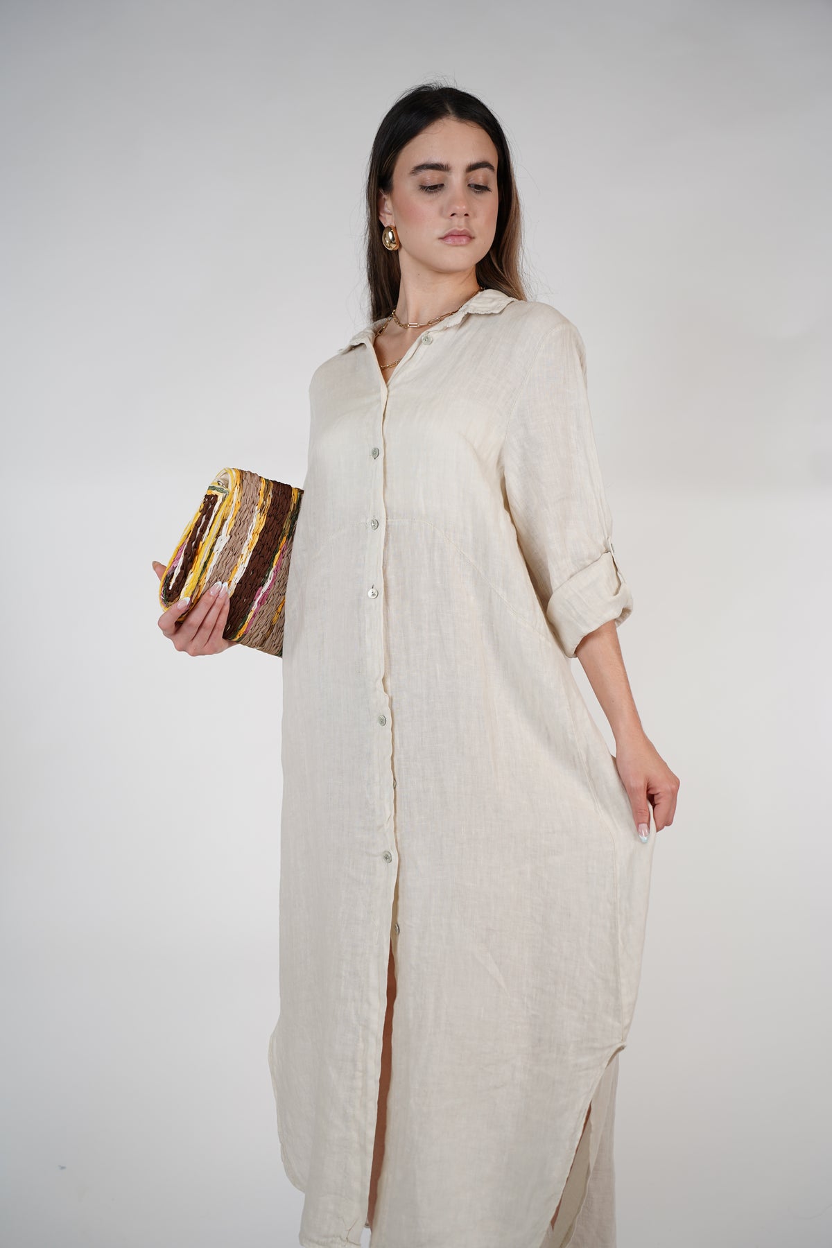 Meta Title: Marzei Linen Maxi Dress – Long Linen Shirt Dress | One Size