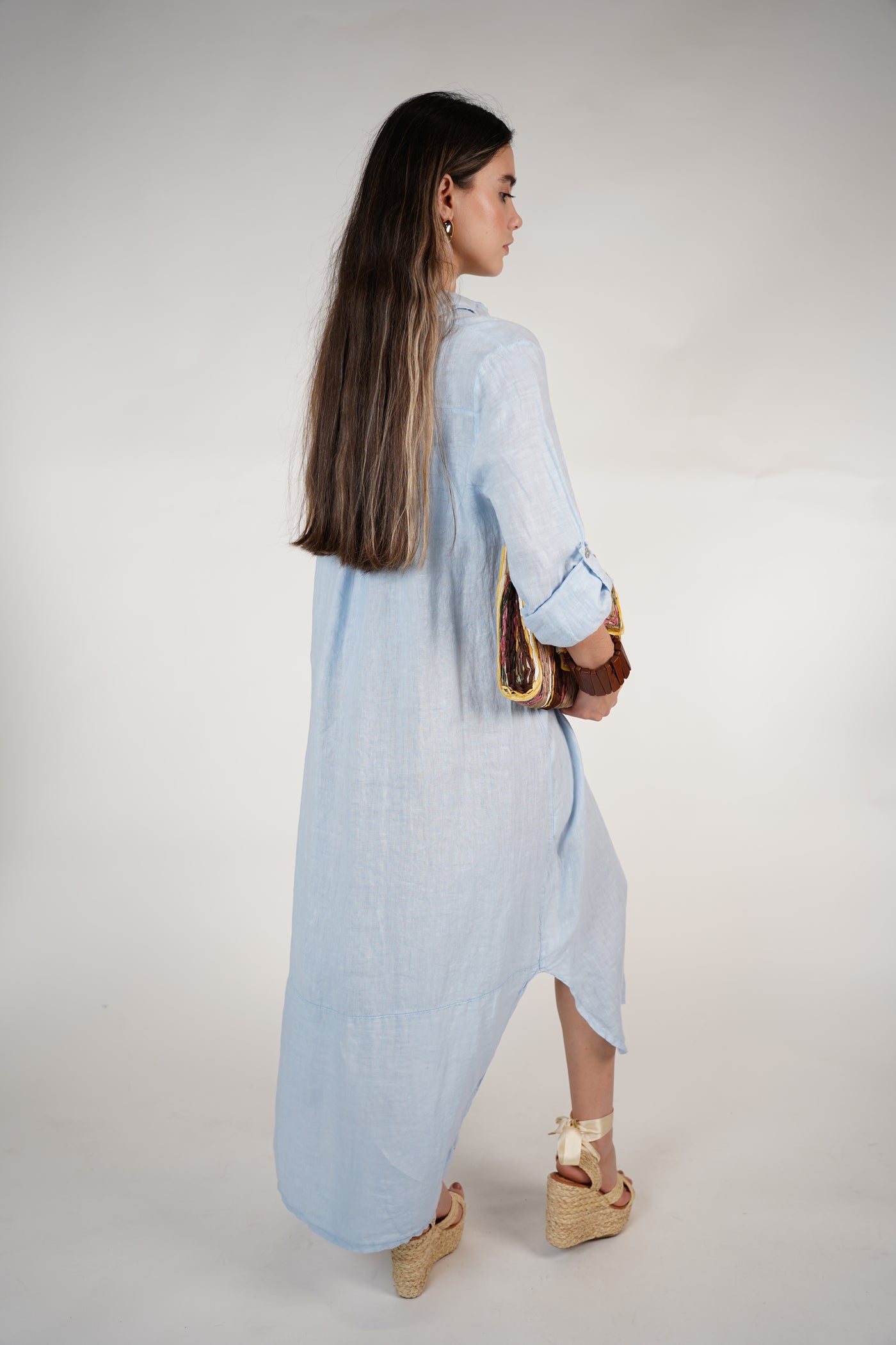 The Marzei Linen Maxi Dress is the ultimate wardrobe staple for warm-weather days. Made from breathable 100% linen, this long shirt dress features a relaxed fit, button-down front, classic collar, and roll-up sleeves. Its lightweight texture and flattering high-low hem make it easy to wear as a dress, beach cover-up, or layering piece. Available in multiple colorways, Marzei is the perfect choice for resort escapes, summer events, or casual-chic everyday wear.