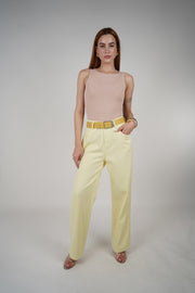 Stretch Yellow Jeans with Belt – High-Rise Pastel Denim