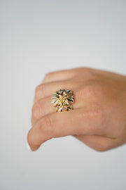 Make a bold floral statement with the Naya Chunky Flower Ring – a sculptural gold-tone piece shaped like a blooming daisy with a high-shine finish.
